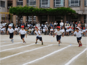 1年生にとっては、はじめての運動会。緊張とわくわくが混ざった表情でスタートラインに並ぶ姿「よーい、ドン!」の合図とともに、小さな足が一斉に地面を蹴り、元気よく走り出しました。緊張しながらも全力でゴールを目指す姿がまぶしかったです!